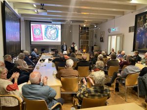 Voorafgaand aan de ALV hielden Peter Moree en Rob van Breda een lezing over het leven en werken van Jacob van Maerlant. Dit als opstapje naar de voorstellingen en lezingen die hier volgend jaar over plaatsvinden in Brielle. Zie ook het artikel in de Brielse Mare: “Wordt 2024 een Maerlant-jaar?”.